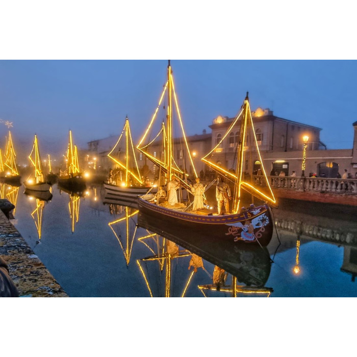Nel pomeriggio trasferimento a CESENATICO per una passeggiata libera sul porto-canale, dove si potranno ammirare le antiche imbarcazioni del Museo della Marineria che ospitano il PRESEPE SULLE BARCHE: la Sacra Famiglia, i Re Magi e tutti gli altri personaggi del presepe tradizionale. Al termine partenza per il rientro, con arrivo in prima serata.